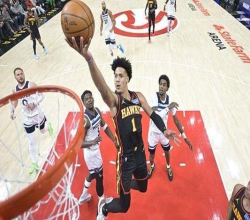 老鹰胜森林狼止7连败吹杨缺席杰伦约翰逊34+9+6华子30分